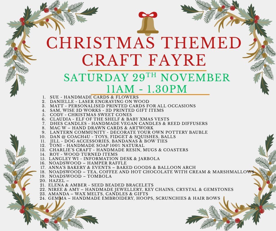 Christmas Themed Craft Fayre - Saturday 29th November from 11am until 1.30pm.